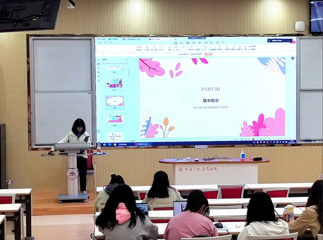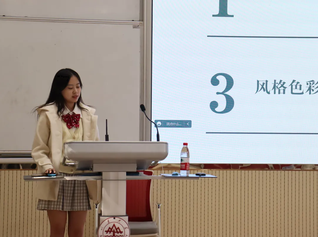 山东大学青年媒体中心视觉传达中心部长解思瑞首先展示了自己的往期设计作品,介绍了视觉设计的几种分类,分享了PS、SAI、Procreate等软件的使用方法,并且详细介绍了色彩搭配与构成。她通过小山竹、团橘和新传小新等形象设计案例生动展示了视觉设计的魅力。解思瑞建议大家在视觉设计方面多积累、多实践,勇于尝试,提高设计水平。