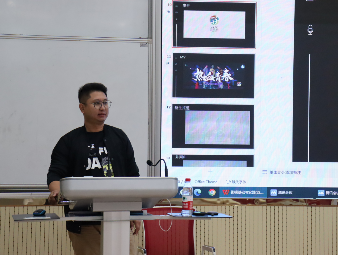 山东大学广播电视台指导教师郭坦从自身的工作实践中总结经验,为新手梳理了一个视频制作快速入门的方法。郭坦以热血青春MV、聆听光影宣传片等一系列视频为切入点,分享了视频的创作故事,讲述了视频的创作历程,介绍并分析了视频的制作流程、创作分工、拍摄手法、后期剪辑。郭坦强调每个人都要具有编导思维,做全能型选手,要打好影视基础,大胆打破常规,创立自己的风格。