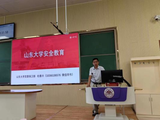 9月6日,山东大学党委保卫处为新闻传播学院新生开展安全教育课,杜春兴老师为同学们分享了与日常生活息息相关的安全知识。