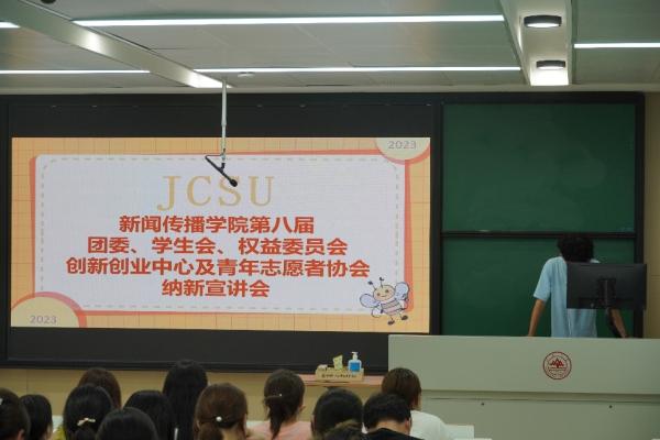 9月10日晚,新闻传播学院第八届“一委三会一中心”纳新宣讲会顺利进行。山东大学新闻传播学院团委、学生会、权益委员会、创新创业中心及青年志愿者协会主要学生骨干,新闻传播学院2023级全体本科生参会。各部门介绍了部门的基本情况和工作属性,邀请2023级新生加入学生组织,和“一委三会一中心”共同成长。