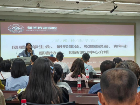9月5日,新闻传播学院召开本科新生入学教育培训会。新闻传播学院教务高菲菲介绍了本科教育概况,强调大学学习更自由,也更需要主动性。她介绍了课程分类和选课流程。辅导员竹雅介绍了新生入学的生活、学习和规章制度方面的内容。新闻传播学院团委兼职副书记张鑫淼介绍了一委三会一中心,包括团委的架构、任务和日常工作,学生会的部门构成和活动,以及权益委员会的职能。