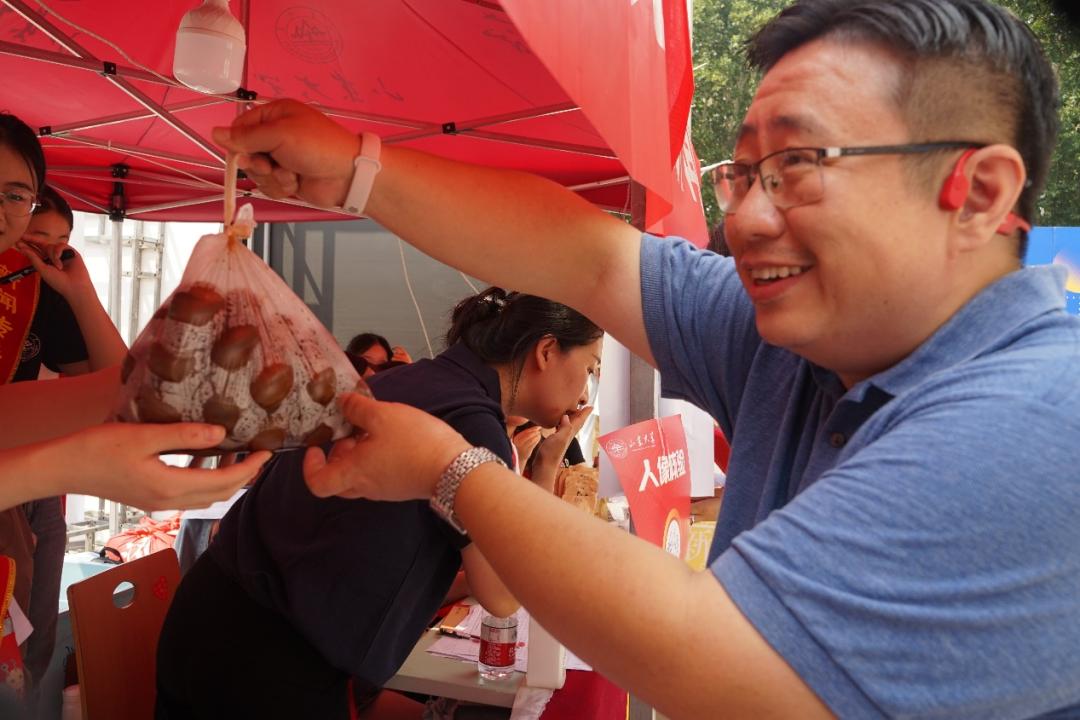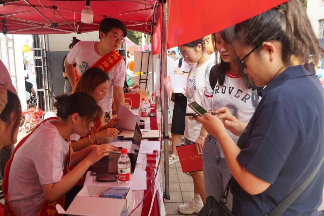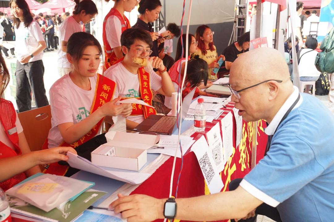 为奉献者奉献,在忙碌的学生志愿者背后,学院老师们组成了最为坚实的后盾,学院领导班子在现场实地指导,由专业教师组成的新生班主任与辅导员队伍在展台全程守候,俞凡教授等专业课老师也带来美食,到报到点向志愿者表达慰问,与同学们交流互动,其乐融融的现场氛围,为新生带来满满的获得感、幸福感与归属感。