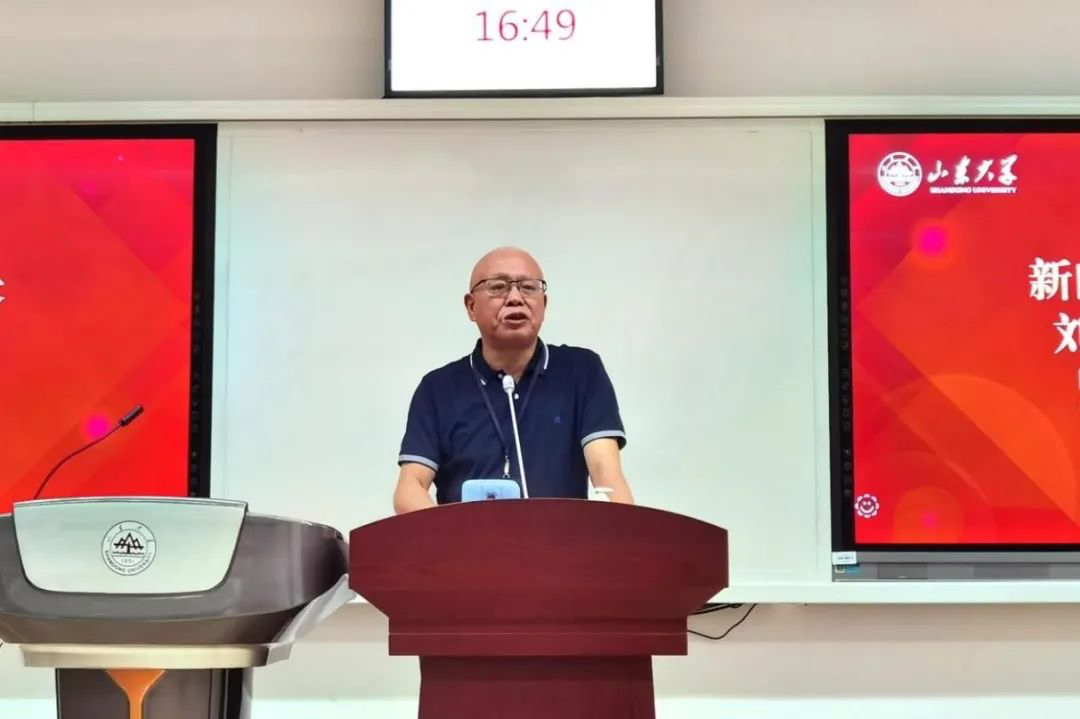 在开学第一课上,学院领导班子成员与全体2023级学生展开深入交流,学院党委书记王德胜以学校与学院发展史为切入点,向新生提出求知、悟道、修身、结缘四个关键词,提醒同学们培养优秀的习惯,练就行动的能力,提升沟通的素养,形成自律的品质,吸收磨练的财富,以开放包容的心态实现个人的成长。院长刘明洋为新生上第一堂课,他为同学们引出“大新闻观”的概念,提出“变革的时代需要新闻的力量”这一观点,他希望同学们能够“做好自己的变革”,在多元实践中提升能力,在精耕细作中躬身科研。学院的教师代表、新生辅导员也表达了对新生的祝贺与欢迎,希望大家能够在山大书写人生的崭新篇章。