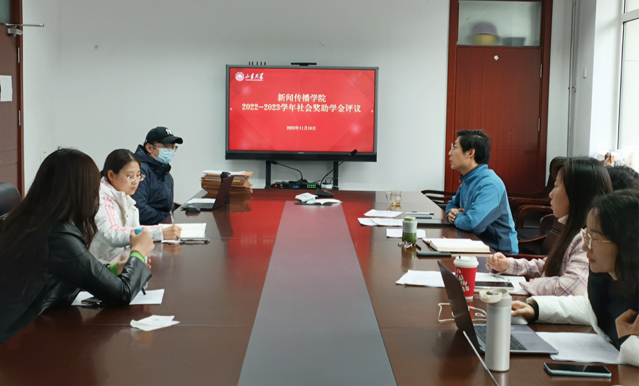 2023年11月16日上午,山东大学新闻传播学院于生命南楼209召开2022-2023学年“中青国合”奖学金评定会。