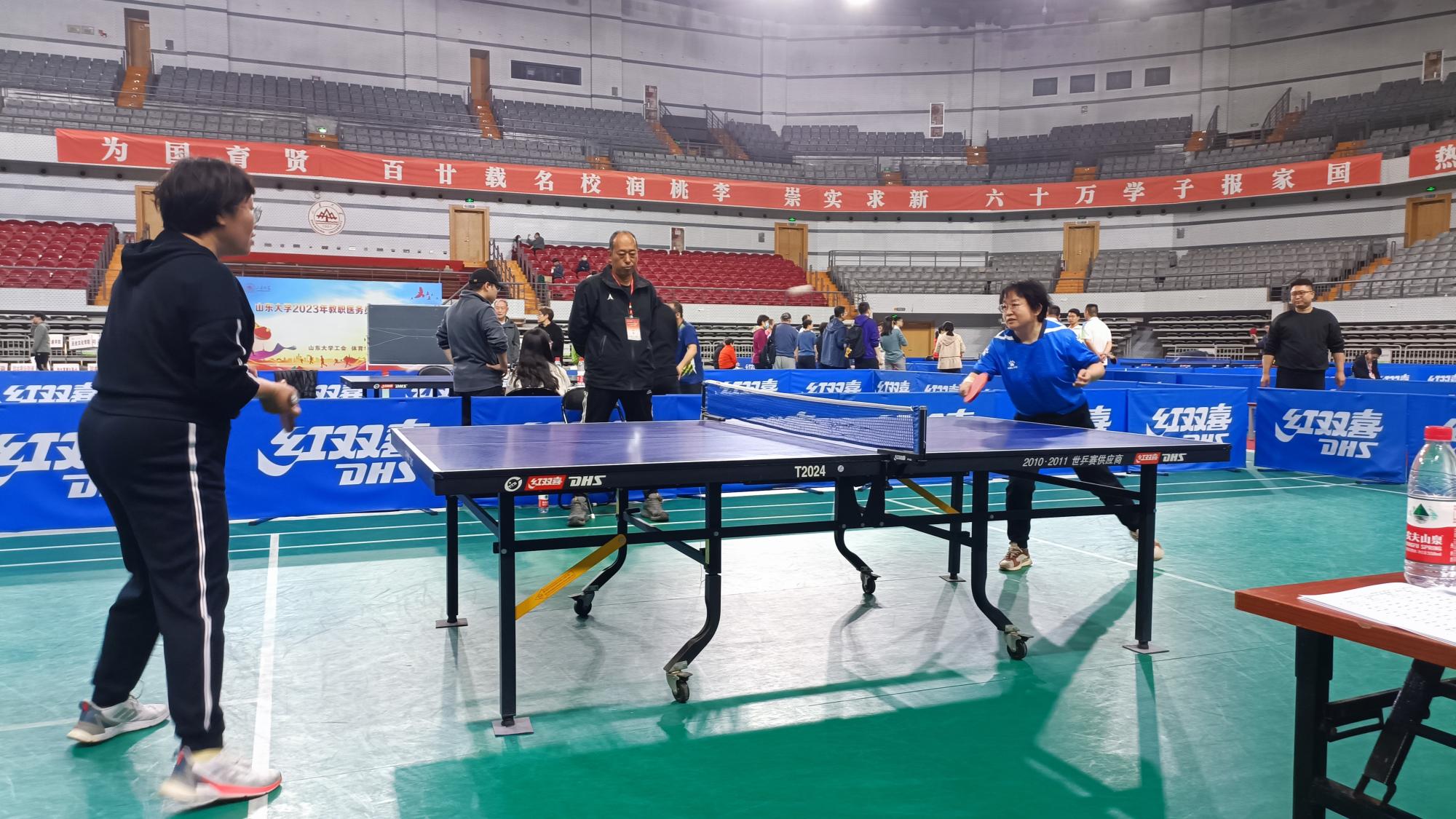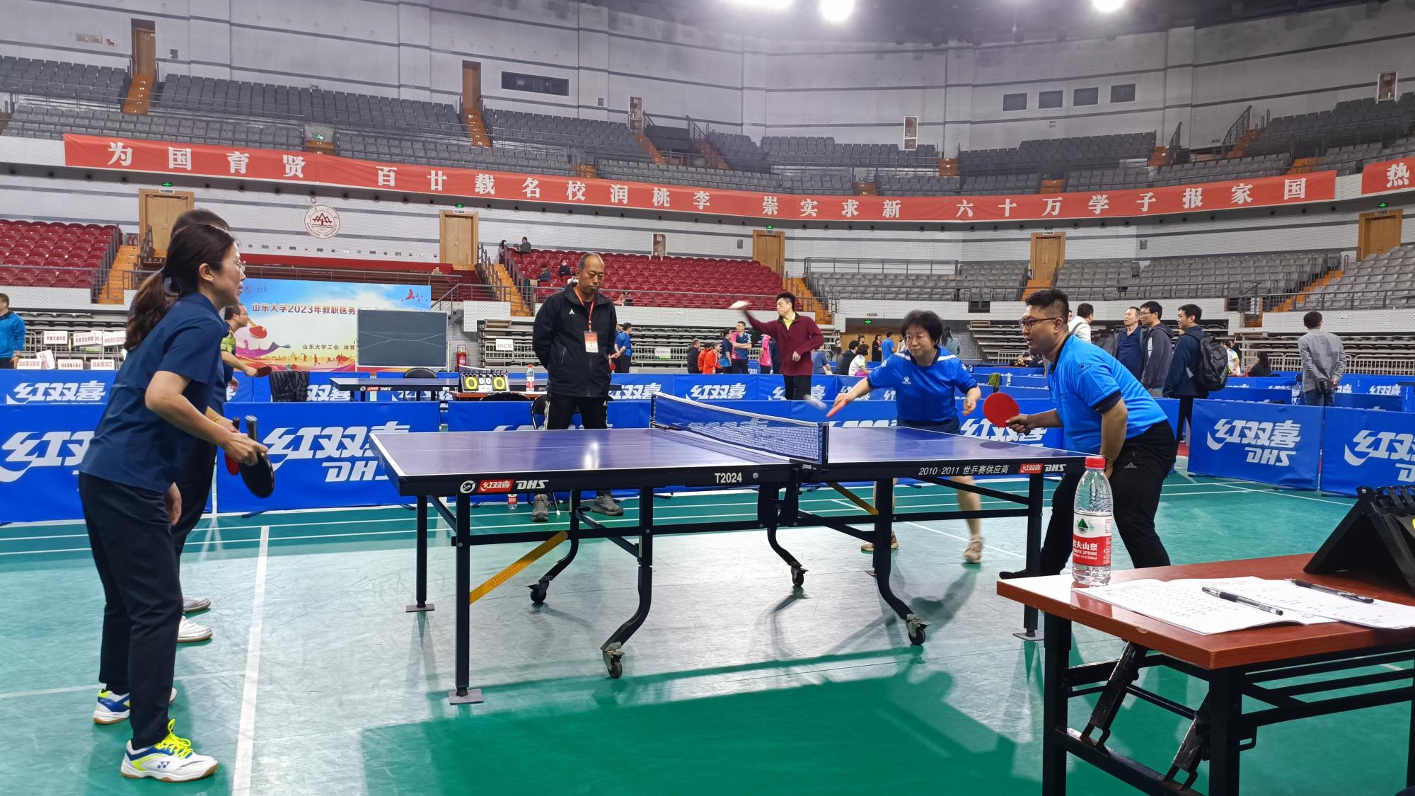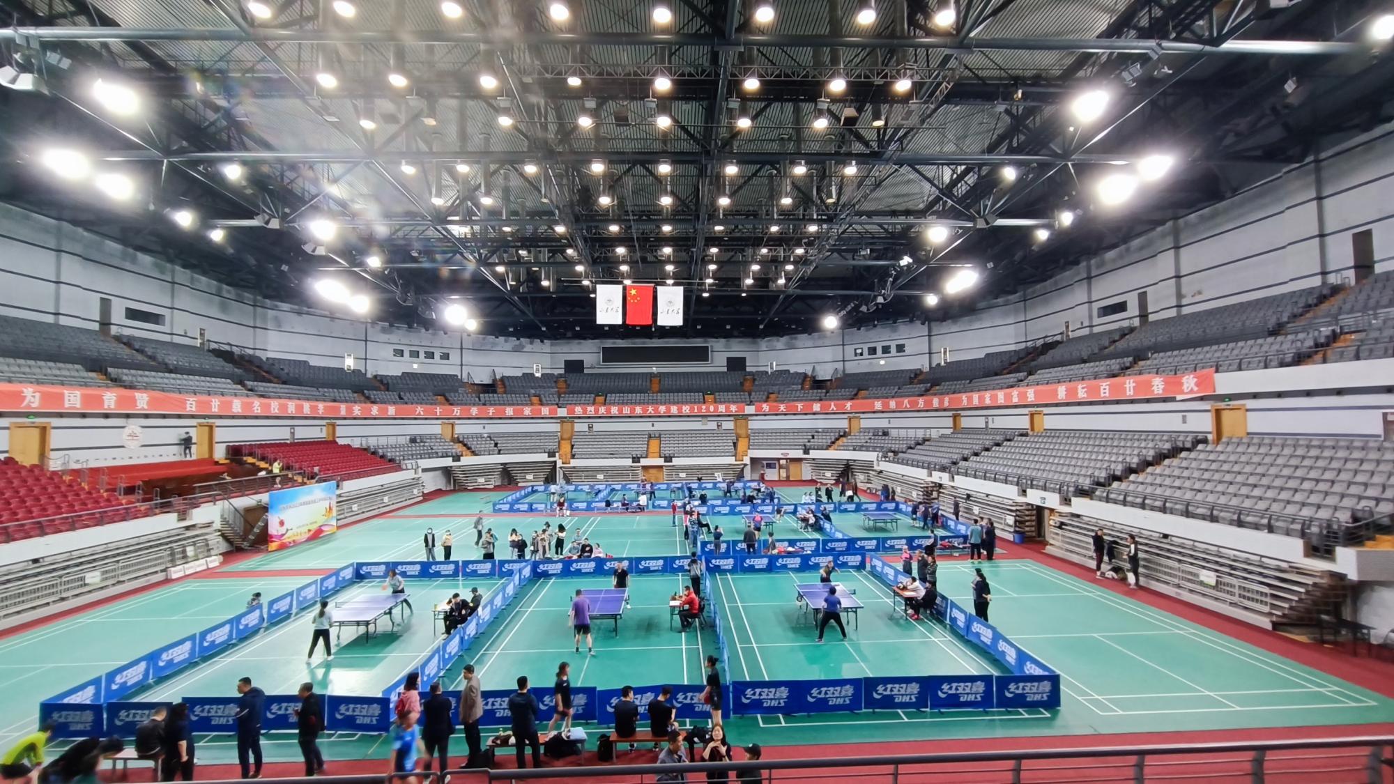 4月15、16日,2023年山东大学教职医务员工乒乓球比赛在山东大学中心校区体育馆举办。新闻传播学院工会积极组织,选拔5名同志组队参加了比赛。