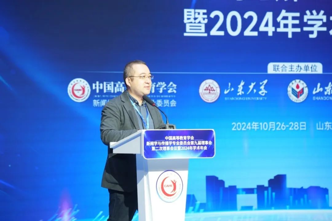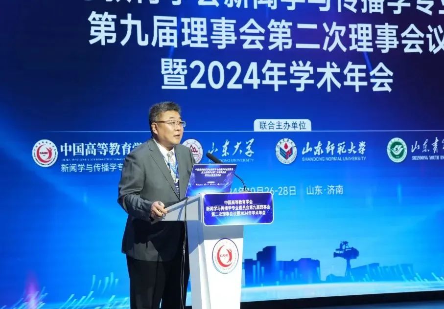 由山东大学联合中国高等教育学会新闻学与传播学专业委员会、山东师范大学、山东青年政治学院主办的中国高等教育学会新闻学与传播学专业委员会第九届理事会第二次理事会议暨2024年学术年会,于2024年10月26日至28日在山东济南隆重举行。年会以“中国新闻传播自主知识体系构建与教材课程建设”为主题,汇聚了来自全国各大高校、科研机构及新闻出版行业的200余位专家学者,共同探讨新闻传播学术研究与教育的发展。本届年会含一个主旨论坛和四个分论坛,70多位学者、专家作报告。