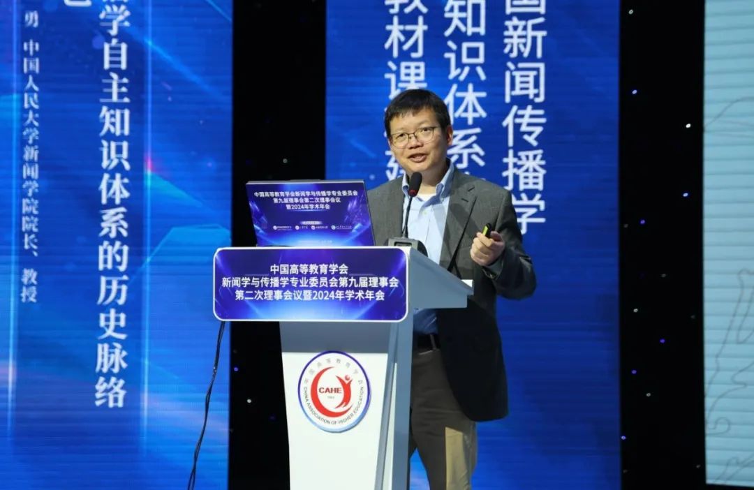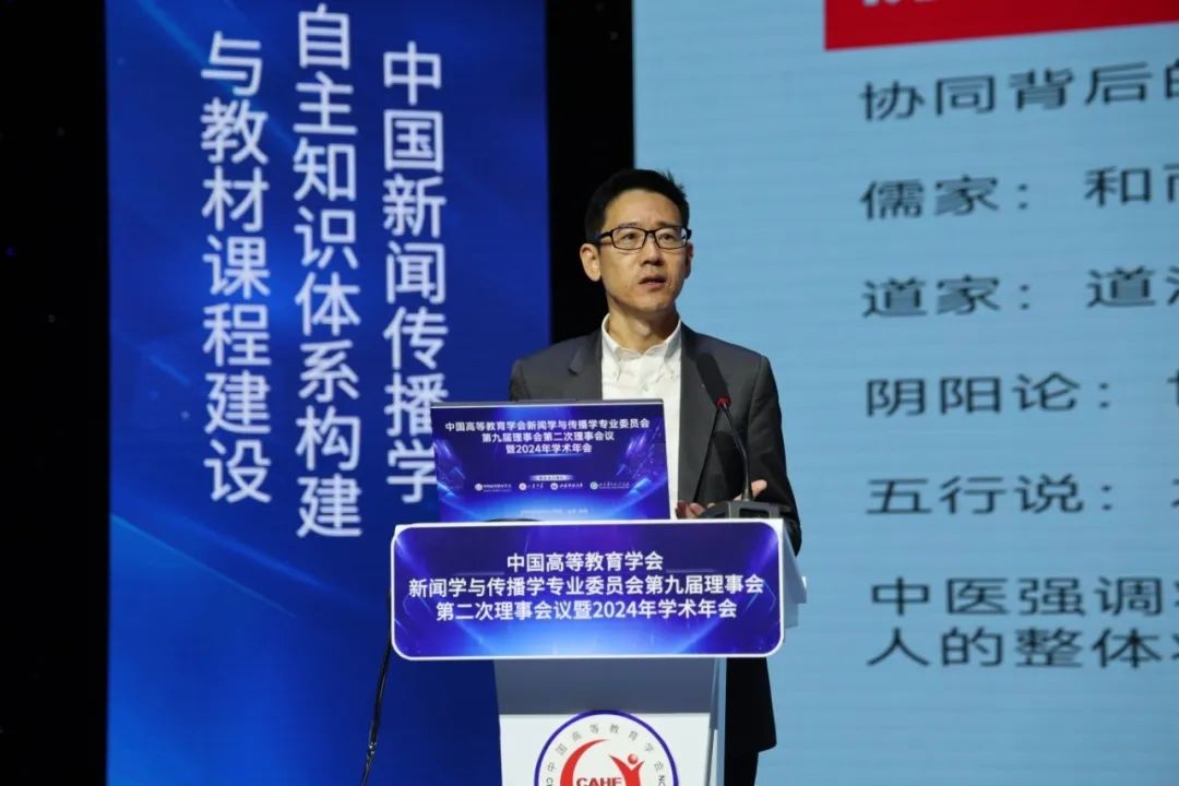 北京大学新闻与传播学院院长、教授陈刚教授以“自主知识体系建构的关键”为题,他指出数字技术革命是对全球社会科学的冲击与挑战。知识体系建构是概念创新、理论创新和研究方法创新的系统化。自主性的知识体系应以问题为导向,尤其对元问题的发现是自主知识体系建构的动力与源起。