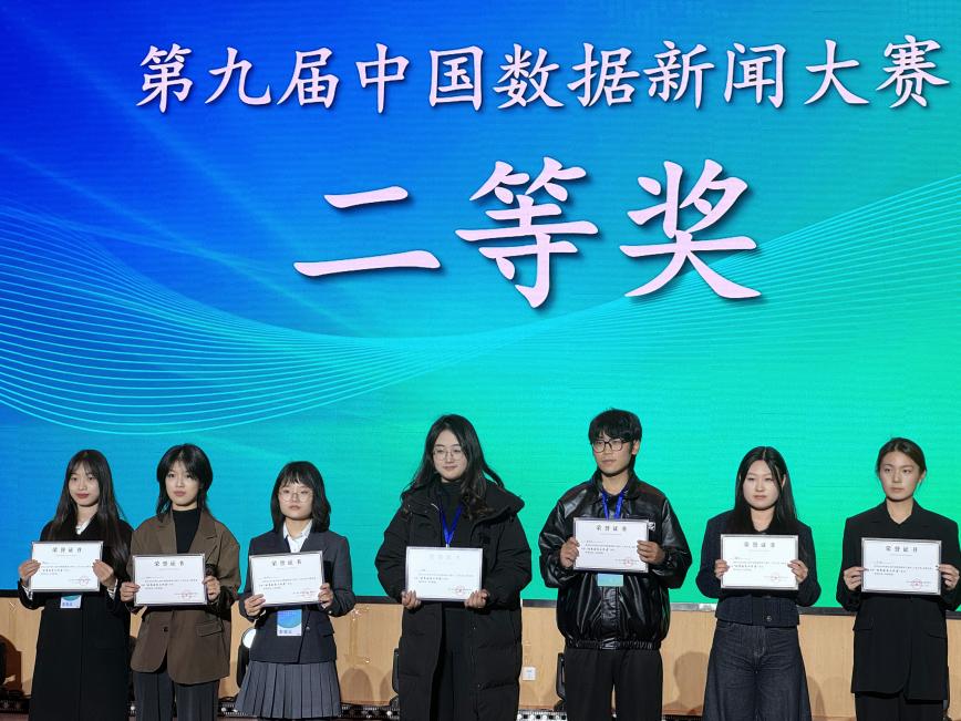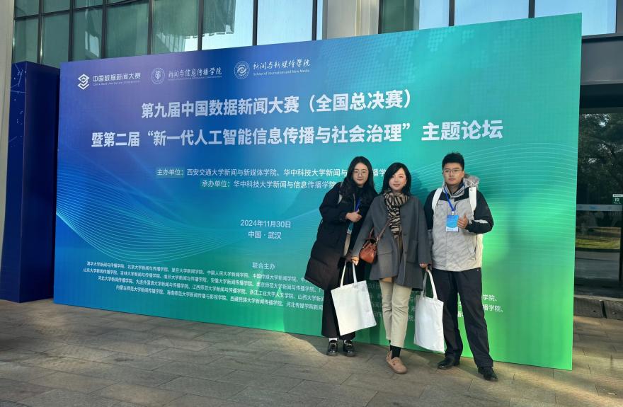 11月30日,第九届中国数据新闻大赛全国总决赛暨第二届“新一代人工智能信息传播与社会治理”主题论坛在华中科技大学举行。学院3支队伍从全国2000余支队伍中脱颖而出角逐决赛奖项。2021级本科生李梓萃、唐艺航、杨曜萌、刘阳海博团队作品《Citywalk的16种打开方式:城市的漫步法则》获得二等奖,2023级本科生韩苇航、刘新宇、白语宸、孙佳硕团队作品《五分钟,看懂无人驾驶背后的智慧交通》获得优秀奖,新媒体系副教授侯滢获得优秀指导教师奖并作为指导教师代表发言。