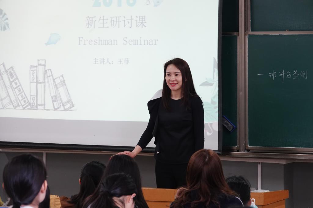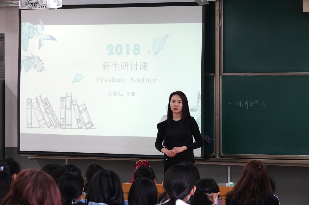 2018年3月13日,新闻传播学院2017级全体学生在中心校区理综楼513参加本学期第二次新生研讨课。此次讲座诚邀山东广播电视台体育频道主持人王菲与同学们交流,为同学们讲述她在媒体从业十年的经验。讲座由17级班主任吴迪老师主持。