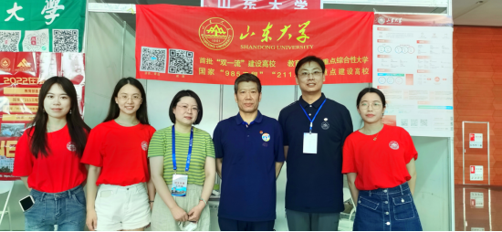 6月26日,新闻传播学院在济南高新区国际会展中心开展本科招生工作,副院长杨晓冬,新闻系系主任俞凡、传播系系主任冯强,本科教务高菲菲在山东大学专区9号展位宣传新闻传播学院。
