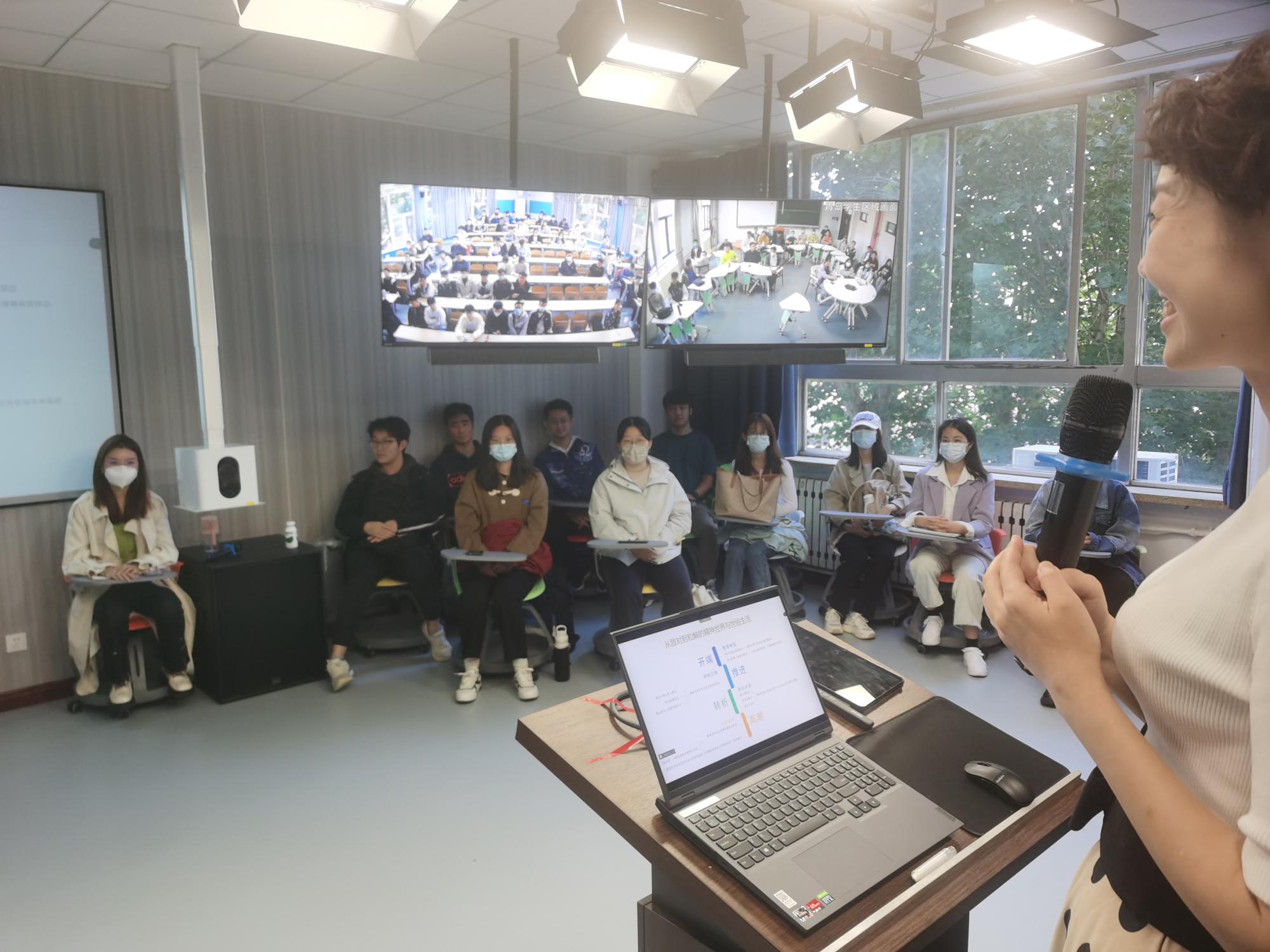 10月7日,新闻传播学院于晓风老师首次使用“山东大学一校三地全息互动教室”授课,来自济南、青岛两地多个校区的近400位本科生参加了课程。这是我校第一次使用全息教室跨校区跨平台直播上课,通过跨校全息教室和腾讯会议相结合的方式,满足了不同校区学生的上课需求。