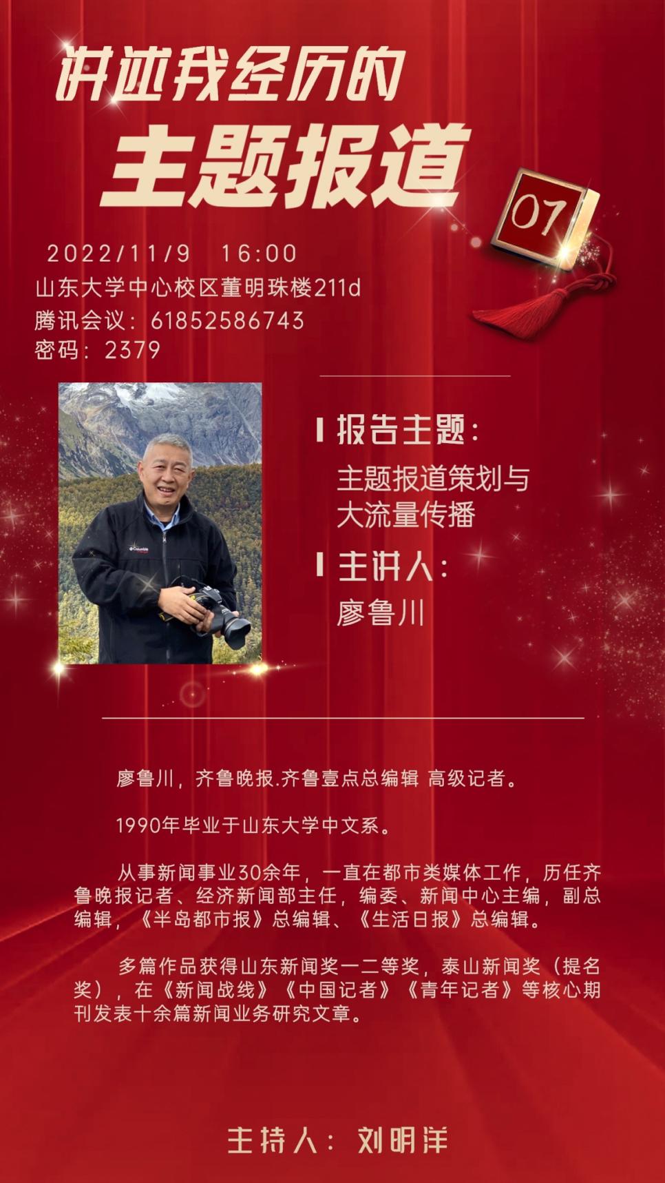 廖鲁川老师将受邀为大家带来本次主题报告