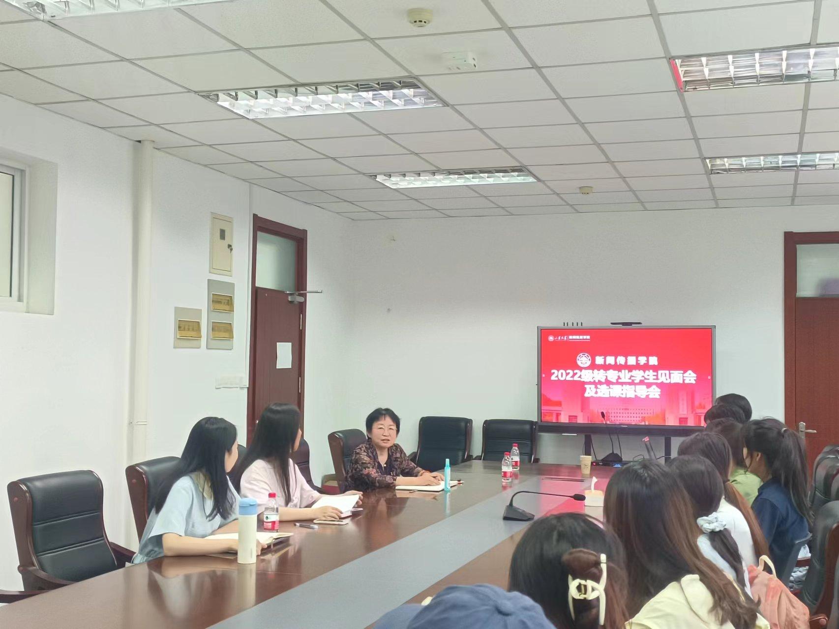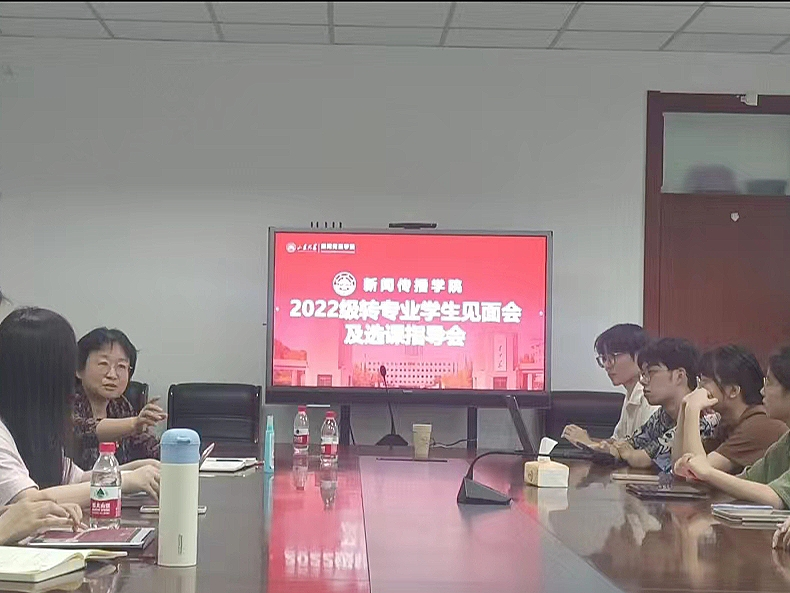 9月7日下午,新闻传播学院于生命南楼209召开2023年秋季学期转专业问题答疑会,学院党委副书记王丽君、本科教务秘书高菲菲、辅导员竹雅以及全体2022级转专业同学参加此次师生面对面交流活动。