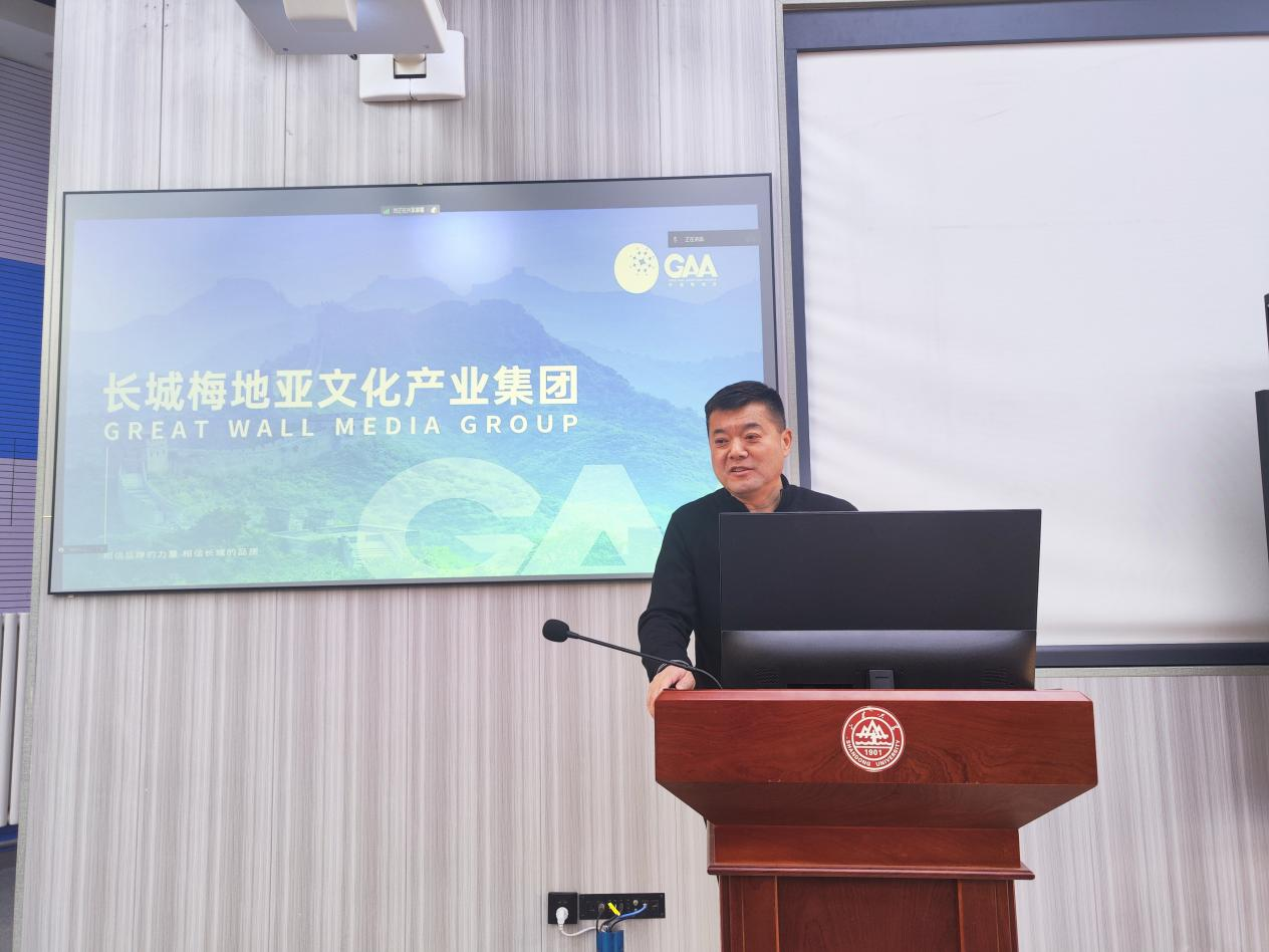 12月27日上午,新闻传播学院2023年秋季学期“业界精英进课堂之我所经历的新闻故事”系列课程第十四讲在中心校区董明珠楼113d教室举行。长城梅地亚文化产业集团总经理、山东省广告协会副会长黄刚担任主讲人。