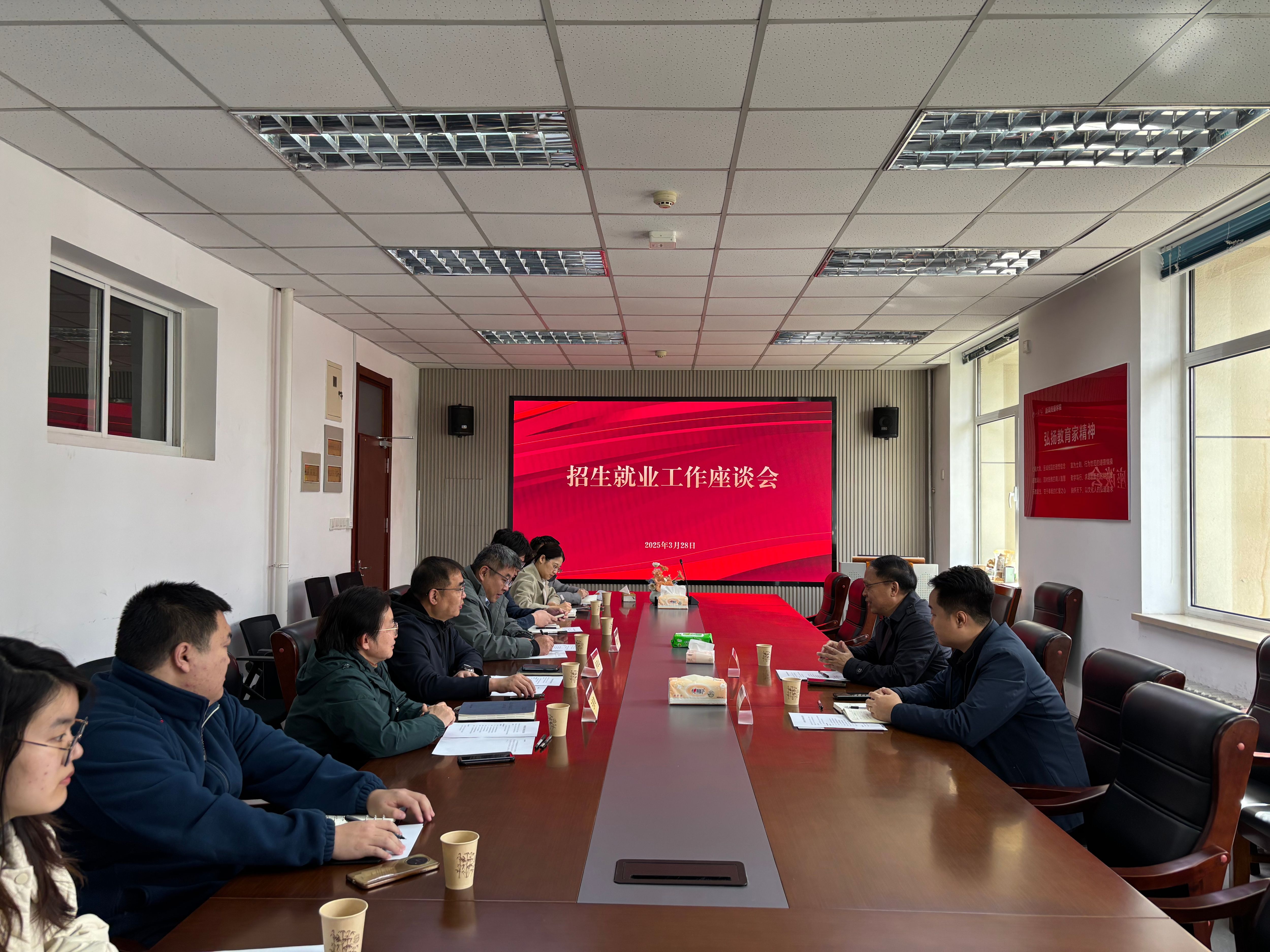 为深化招生就业工作交流,推动校际合作、大中衔接,新闻传播学院于3月28日上午在中心校区生命南楼209会议室召开招生就业工作座谈会。海口中学党总支书记、副校长肖晓辉,山东大学数学学院、物理学院、化学与化工学院、文学院辅导员莅临学院,新闻传播学院党委书记孙宜山、常务副院长倪万、党委副书记王丽君共同参会。与会人员在招生、就业方面展开热烈讨论,共商招生就业合作新方向、新路径、新模式。