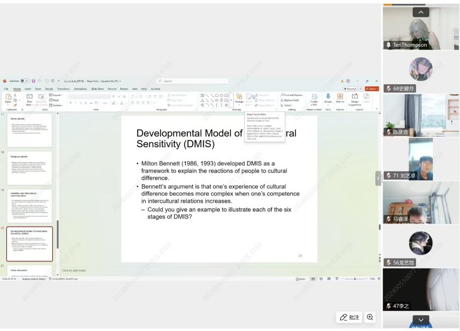 课程伊始,Thompson教授以“文化如何被传播,又如何塑造我们?”这一核心问题切入,引导学生思考全球化语境下文化流动的复杂机制。围绕“文化多样性贡献因素”“文化核心概念”两大模块,课堂依次展开三重视域的探讨:一是通信技术迭代——互联网、社交媒体、即时通讯软件如何使跨文化交往“瞬间可达”;二是国际移民与难民流动——人口迁徙带来的文化碰撞如何重塑东道国的族群景观与工作场所创新;三是文化深层结构——信念、价值观、世界观如何构成文化的“内核”,并通过视觉符号、叙事框架与日常实践被持续再生产。