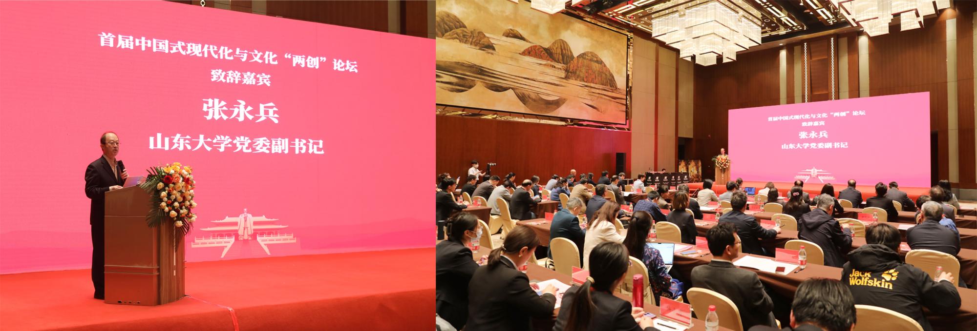 张永兵在致辞中强调,今年是全面贯彻党的二十大精神的开局之年,是习近平总书记视察曲阜十周年。共聚曲阜圣贤地,举办首届“中国式现代化与文化‘两创’论坛”,深入探讨中国式现代化的历史进程及中华优秀传统文化的创造性转化、创新性发展,意义重大。一是体现了对习近平总书记十年前视察曲阜的纪念和进一步学习贯彻;二是贯彻落实党的二十大关于中国式现代化思想的具体行动;三是会议安排在儒学源乡举办,使得文化“两创”的学术研讨更接地气和根脉。他指出,中国式现代化的特色之一就是物质文明和精神文明相结合的现代化,党的二十大报告强调要“大力发展社会主义先进文化,传承中华文明”,这赋予了文化“两创”新的重大责任使命。坚定文化自信,建设文化强国,需要我们结合新的时代条件传承好、弘扬好中华优秀传统文化,守正创新、推陈出新,推动优秀传统文化在创造性转化、创新性发展中,不断焕发生机活力,让中华文化绽放出新的时代光彩。他希望在中国式现代化背景下,该论坛能成长为具有广泛影响力的文化“两创”论坛,期待各位专家学者激荡思想,奉献智慧,共同推进中华优秀优秀文化在中国式现代化进程中发扬光大,为中国式现代化建设注入强大精神力量。