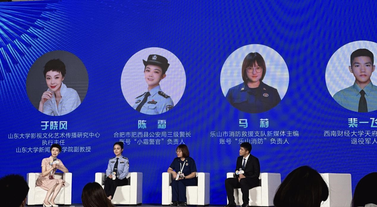 “网络视听主题宣传”分论坛以“发挥视听优势 建设文化强国”为主题,由国家广播电视总局、山东省人民政府主办,山东省广播电视局、青岛市人民政府、人民网承办,人民视频协办。国家广播电视总局网络视听节目管理司司长冯胜勇出席本次论坛,国家广播电视总局网络视听节目管理司副司长任道远,人民网党委书记、董事长、总裁叶蓁蓁,山东省广播电视局党组成员、副局长彭子良等出席会议并致辞,共同聚焦新时代新征程网络视听精品创作趋势,探讨网络视听主题宣传新路径。论坛分为媒体观点、案例分享、精品推介、圆桌对话四大板块,其中“拍客说”圆桌对话板块由于晓风担任主持人,与合肥市肥西县公安局三级警长、账号“小霜警官”负责人陈霜,乐山市消防救援支队新媒体主编、账号“乐山消防”负责人马莉,西南财经大学天府学院学生、退役军人裴一飞,长春客运段动车队列车长、账号“影老板”运营负责人刘影四位嘉宾,通过线上线下互动的方式,共话拍客队伍建设、正能量视频创作等话题,积极探讨在拍客成为信息“源”创力量的时代背景下,以“人民拍客”队伍为主体的参与者通过机构和个人的贡献,如何参与到UGC、PUGC等全民主题宣传的时代议题当中。