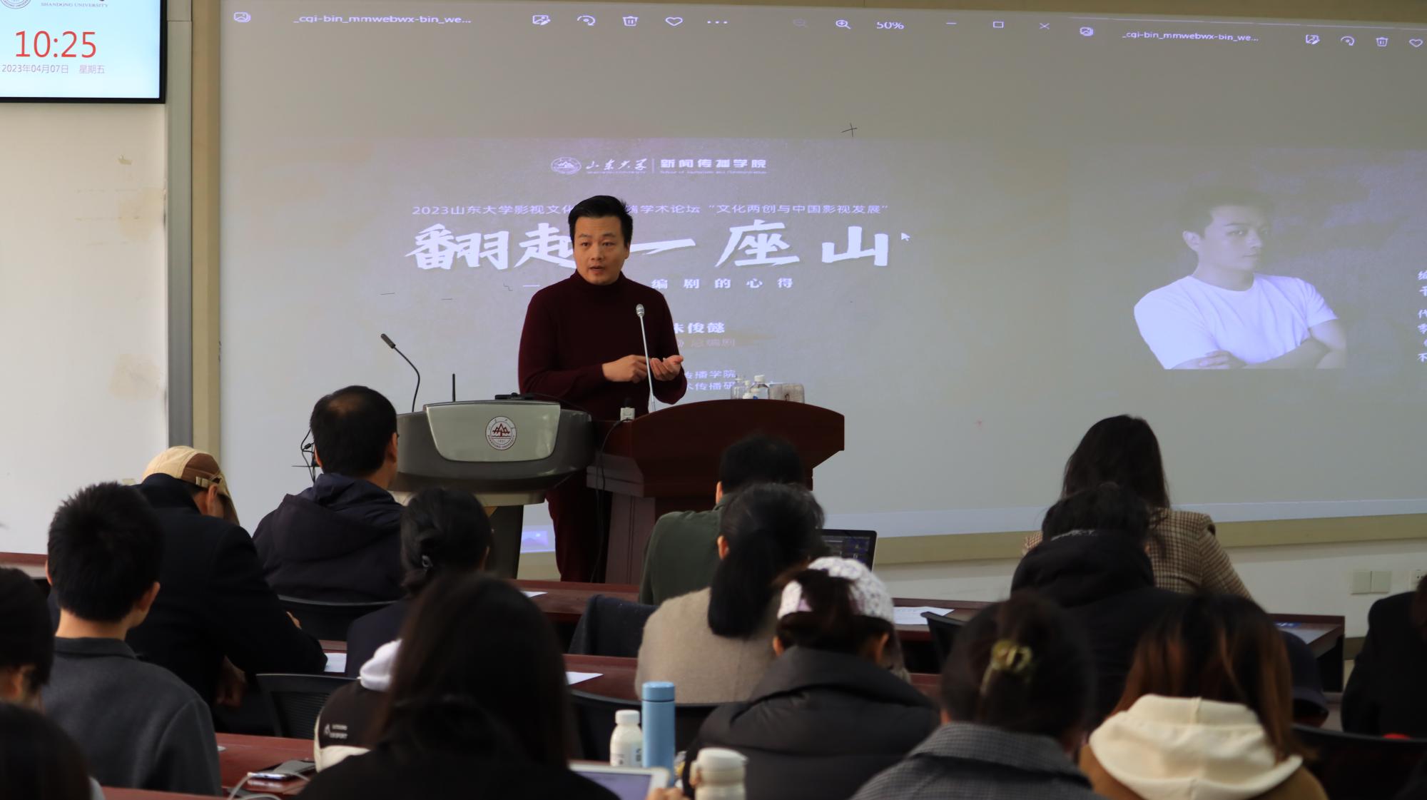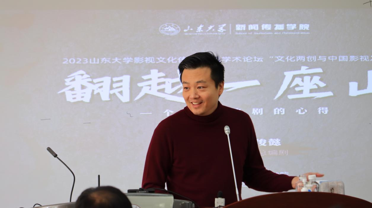 4月7日,由山东大学新闻传播学院主办的山东大学影视文化传播高端学术论坛“文化两创与中国影视发展”在中心校区拉开帷幕。首期活动特邀本年度同步席卷荧屏和互联网的顶流热播电视剧——《狂飙》的总编剧朱俊懿作为主讲人,讲座主题是“翻越一座山——一个外行编剧的心得”。山东大学新闻传播学院副教授、山东大学影视文化艺术传播研究中心执行主任于晓风担任本场主持。来自山东省广播电视协会、济南大学、山东传媒职业学院、山东影视传媒集团、山东齐鲁壹点传媒有限公司、日照电影家协会等单位的专家学者齐聚一堂,共同围绕电视剧《狂飙》的创作、阐释、解读和传播进行深度探讨。