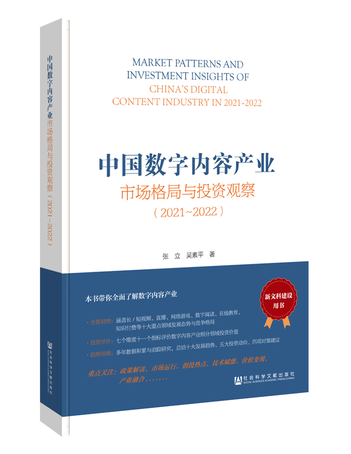 近日,新闻传播学院校级特聘教授张立出版著作《中国数字内容产业市场格局与投资观察(2021~2022)》(合著),张立教授自2015年以来持续发布中国数字内容产业研究报告,这是最新推出的第四部。