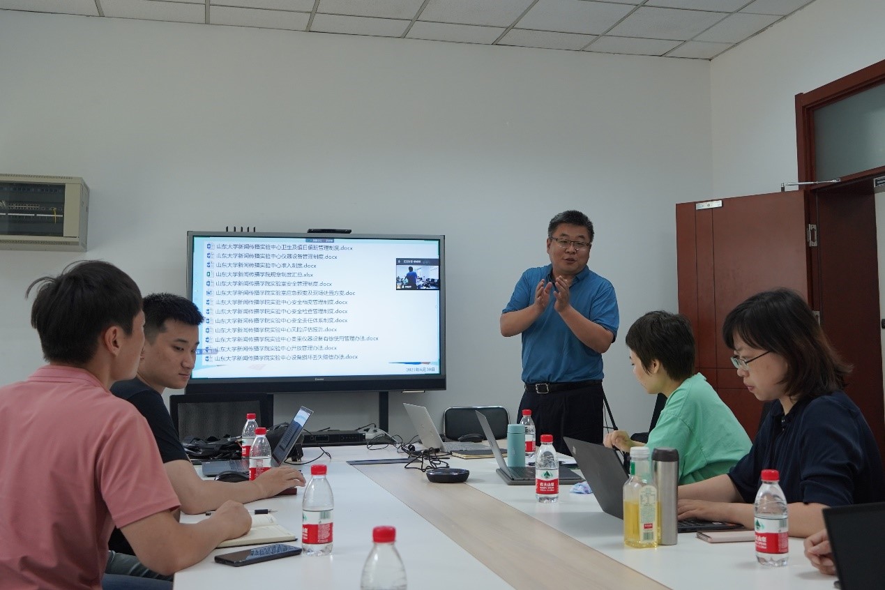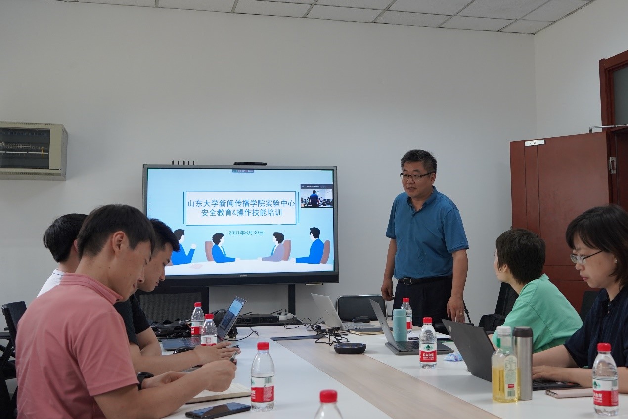 6月30日下午,新闻传播学院实验中心安全教育&操作技能培训会议在传播系会议室举行。会议由倪万副院长主持,实验中心工作人员和学院相关教职工参加会议,威海校区文化传播学院部分教职工线上参会。