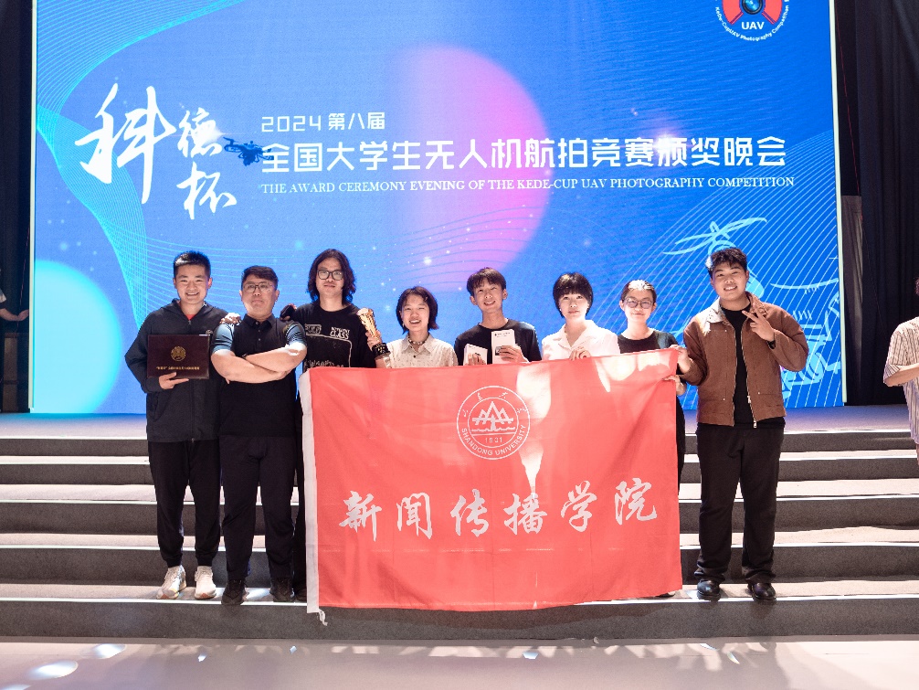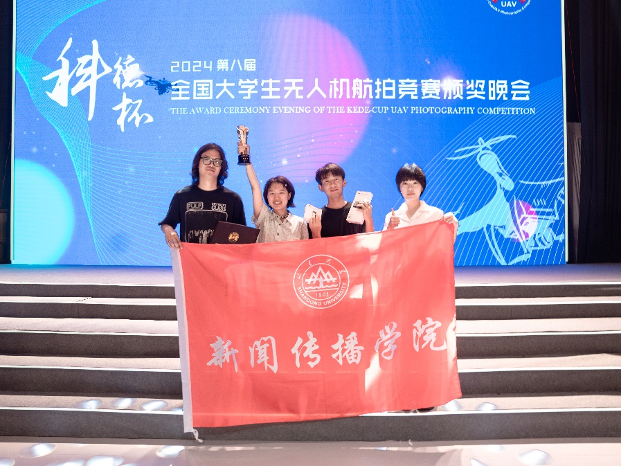2024年5月25日至5月31日,第八届“科德杯”全国大学生无人机航拍竞赛在首都师范大学科德学院举办。新闻传播学院派出两支队伍参赛,“山东大学一队”由我院实验教师张恺月指导,2021级本科生邓梦圆、2020级本科生吴卓林、2021级本科生苏鋬作为队员组成,“山东大学二队”由郭坦老师指导,2022级本科生刘明睿、2022级本科生王帅、2022级本科生袁泽琪组队参赛。“山东大学一队”限时创作组图作品《不会放弃你》获得大赛三等奖。