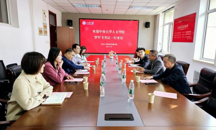 座谈会上,孙宜山代表山东大学新闻传播学院热烈欢迎罗军飞一行到访,介绍了学校和学院的发展历程、专业建设、师资队伍、人才培养以及实验室建设等情况。中南大学人文学院党委书记罗军飞高度评价了山东大学新闻传播学院在专业发展、人才培养和实验室建设等方面取得的成绩。他表示,中南大学人文学院与山东大学新闻传播学院在学院建设和发展上存在诸多共通之处,希望通过此次交流座谈,深入了解兄弟院校的办学经验,助力人才培养。