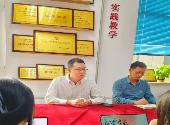 首先,倪万指出“红色视听工坊”是实验室与党建工作的创新融合体,不仅是学院教学实践的重要平台,更是深化红色文化教育、提升学生专业技能的前沿阵地,要围绕学校重点工作,将品牌化、特色化的元素融入视频创作之中,要抓住新媒体创作的机遇,创作出既符合时代发展需求又承载优秀传统文化的作品。对工坊的建设提出明确要求:一是打造品牌,即通过一系列高质量作品,树立起“山东大学红色视听工坊”的品牌形象;二是挖掘亮点,聚焦于马克思主义新闻观、国际传播等方面的建设,力求产出高质量的作品。