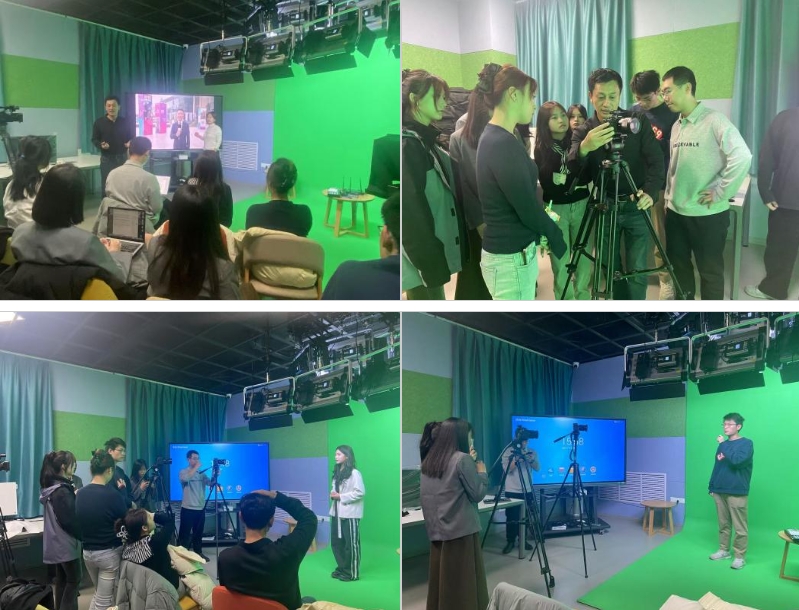 2024年11-12月,我院梁艳老师主持的《出镜记者与现场报道》实验教学环节在新闻传播学院实验教学中心融媒体与全息传播实验室演播室开展,该教学环节邀请山东大学广播电视台徐迎春老师对学生进行一对一指导。通过模拟出镜的方式,锻炼学生面对摄像头时的自我调控能力,提升学生出镜报道的心理素质和语言表达等综合能力。