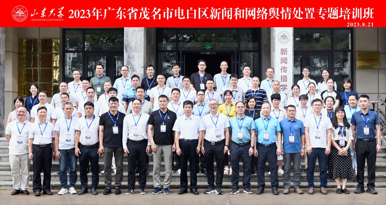 2023年8月21日上午,由山东大学新闻传播学院承办的2023 年广东省茂名市电白区新闻和网络舆情处置专题培训班,在山东大学中心校区顺利开班。
