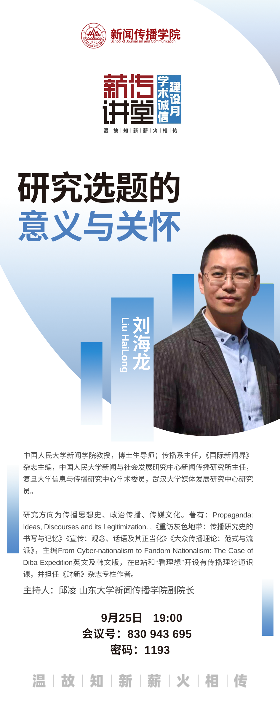 会议号:830 943 695 密码:1193