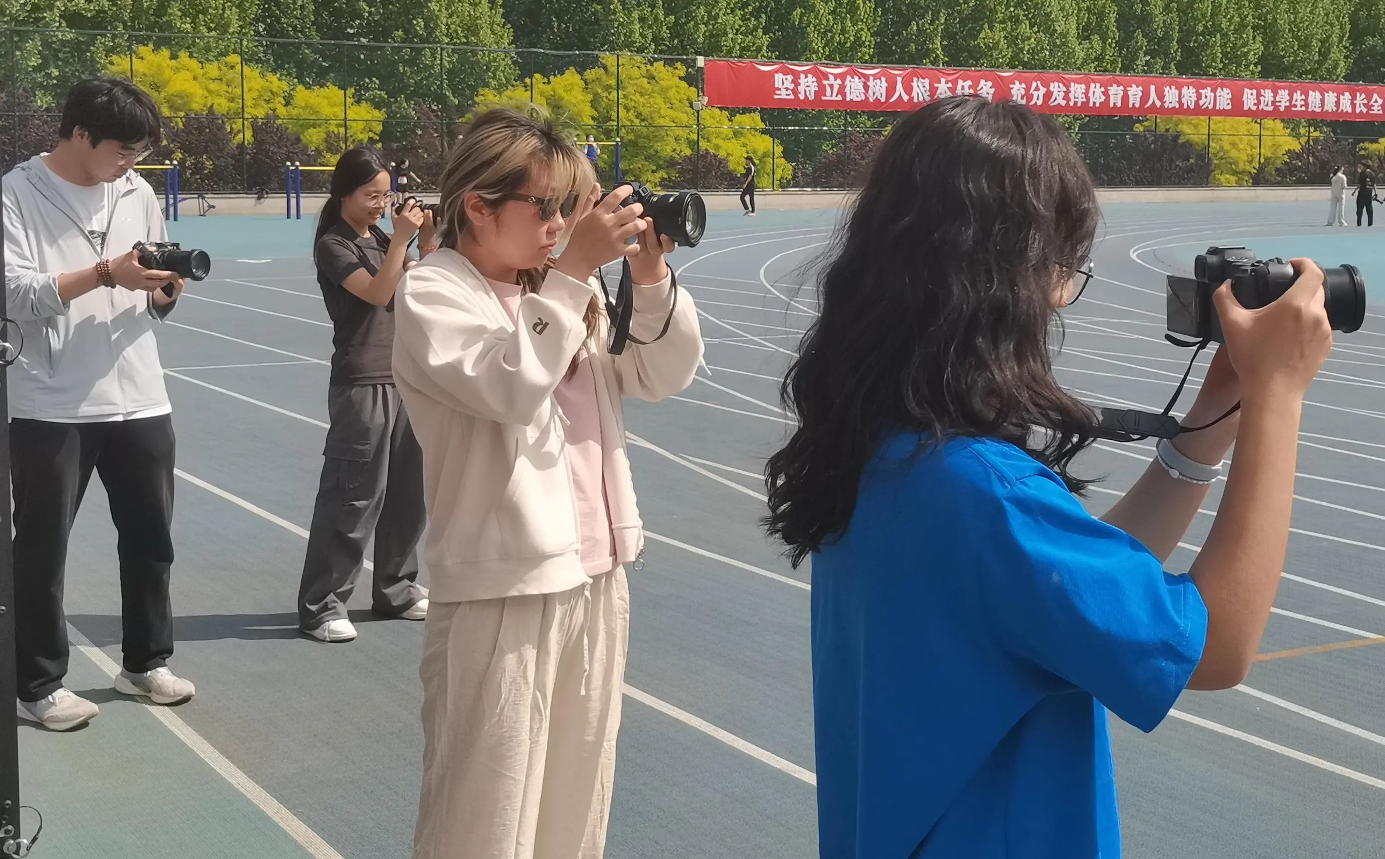 学生会媒体宣传中心的同学在场上奔跑
