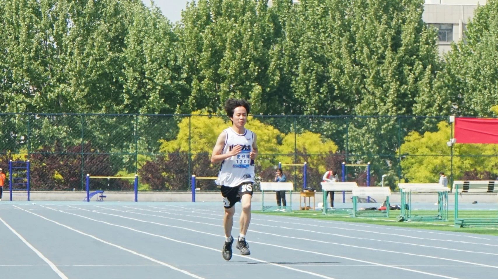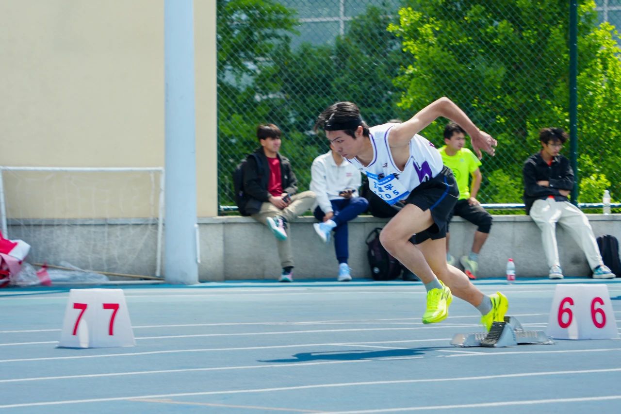 起跑刹那,步伐铿锵,似疾风掠地