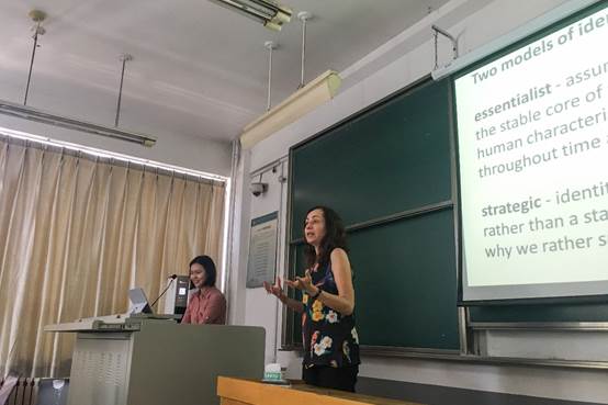 随即Joanna Zylinska教授提出今天讨论的是与人类生命相关的基本问题,如“我是谁”“我是如何看待认识自己的”,而其中核心问题就是“我是谁(Who am I)”,与此同时还要思考“我们是怎样获得身份的”。大家可能都会认为这些问题是理所当然或者显而易见的,但从文化研究的角度来看,所谓的身份并不是定型的,权力、文化习俗、家庭、传统、意识形态等因素都会造成人们对身份定义理解的不同。针对这个问题,Joanna Zylinska教授为我们讲述了关于身份解释的两种模型。第一是Essentialist,假设关于人的自我身份是一个核定的概念,即在时间和地点范围内人类的本质特征是不变的;第二是Strategic,身份应该要被看作是一个变化的过程,而不是一种恒定的状态。在第一个话题里,“人性本质是一成不变的”的观点让我们没有更多的争议的空间,教授也认为这个观点是不可取的。而第二个问题才有助于帮助我们理解人的文化身份是如何在发展中被再次塑造的,让我们认识到人的一生的任务就是发现自我。这就是为什么我们今天对谈论identifications(身份)更加感兴趣的原因。