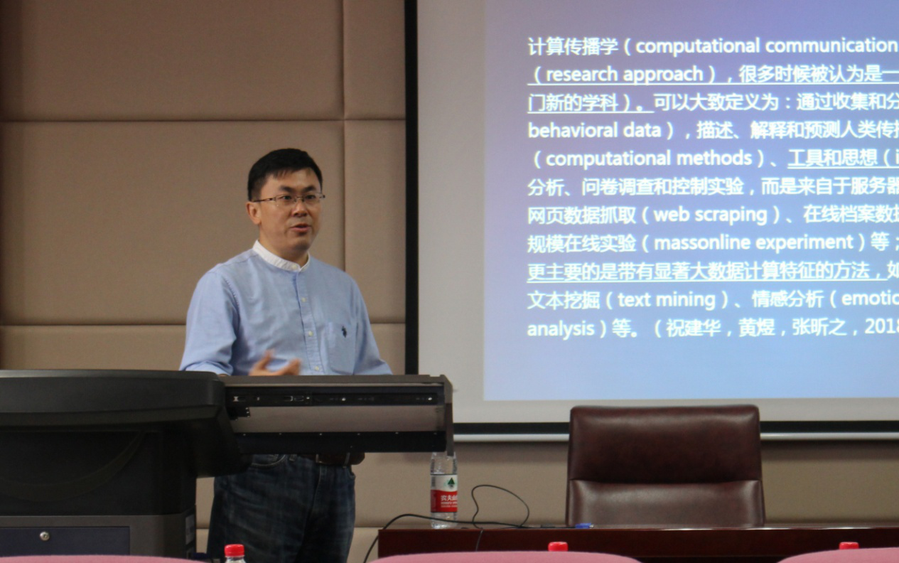 6月14日上午,深圳大学传播学院院长巢乃鹏教授做客山东大学新闻传播学院“媒介科学前沿报告”讲坛,并进行了题为“计算传播研究的方法和路径”的学术讲座,为在场师生详细介绍了计算传播学的基本定义、研究方法与研究路径。讲座由我院新闻传播学院副院长倪万教授主持。