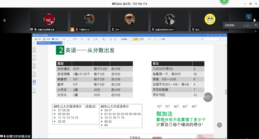 之后,温莹雪、姚思雨、寇雅婷分别就百分制成绩单列保研、学科交叉院系互推计划、支教保研专项计划这三种专项计划保研途径进行了分享。三位学姐着重讲解了确立保研目标、审核保研资格、准备材料、准备面试等环节的注意事项,突出了提前规划以及做好面试表现的重要性,分享了自己在准备保研过程中的一系列心路历程,在心态上给学弟学妹们加油鼓劲,叮嘱学弟学妹们尽快确立目标、做好规划,尽可能耐心和全面地搜集和筛选有关保研的信息,保持平稳心态,尽力尝试一切可能。