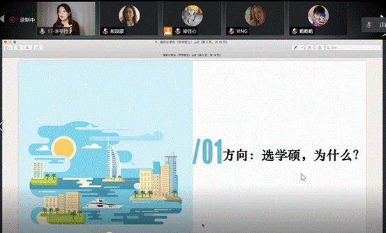 作为边缘保研人,窦培育有自己的心得体会。她以自己为例,分析了边缘保研人和其他同学相比的特殊准备。窦培育为同学们介绍了多种保研途径,并对这些保研的要求进行详细解析。她提到,“边缘保研人要做两手准备,在保研同时准备考研,要在全面复习知识的同时针对报考院校有目的地复习,无死角且深入”。最后,窦培育鼓励同学们,不要因为目前不在保研范围内就对保研丧失希望,第五第六学期还很有机会冲击保研名额。