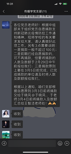 传播学党支部于2020年2月28日组织支部为单位的新冠肺炎疫情防控工作线上捐款活动,在榜样力量的感召下,仅仅用了半个小时,支部11名党员共捐款950元,其中包括多名表示已在前期各层级捐款活动中有过捐款的党员老师,都纷纷毫不犹豫地再次捐款。