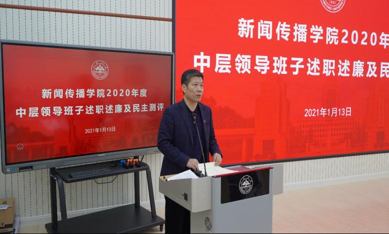 根据学校党委的要求,1月13日下午,新闻传播学院在生命南楼231召开领导班子述职述廉与民主测评会。会上学院领导班子及成员对2020年的工作进行了述职述廉总结,全体教工参加了民主测评。会议由学院党委书记王德胜主持。