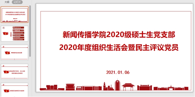 最后,新闻传播学院党委书记王德胜对会议做出总结,他从自身经历出发对支部同学们在职业发展中常遇到的困惑进行了解答,并以家庭、企业、学校多个维度为例明确了民主生活会在支部建设中的重要意义。学院组织员王智洁肯定了支部半年来的工作,就进一步规范党支部组织生活、开展疫情期间的党员先锋活动两方面提出期许,并希望在百廿校庆来临之际,支部党员能以身作则,以新气象新担当新作为迎接新的一年。