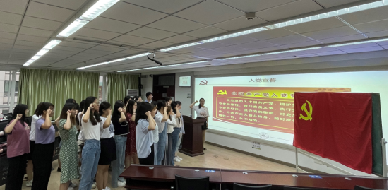 投票表决后,陈玮瑜等13名同志及全体与会党员面对党旗进行庄严宣誓,铿锵有力的誓词表达着他们为党的事业奋斗终生的决心和坚定信念。