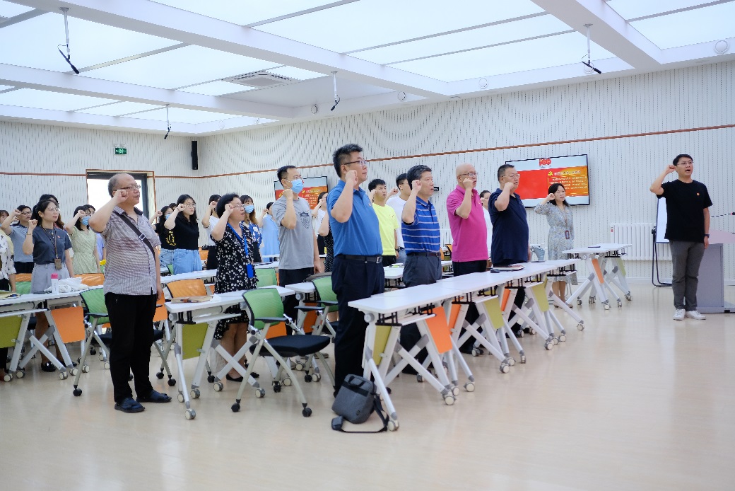观看直播结束后,新闻传播学院全体党员开展重温入党誓词活动,在建党百年这一特殊时刻,作为高校师生,听党话、感党恩、跟党走,不忘初心、牢记使命,踏上全面建设社会主义现代化国家新征程。