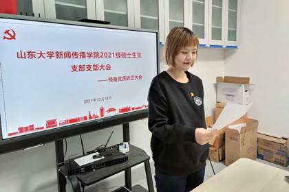 12月18日晚,新闻传播学院2021级硕士生党支部预备党员转正大会在生命南楼109室召开。本次会议的主题是讨论支部内于典、苗冰涛、王璐三位同志按期转正的问题。2021级硕士生党支部22名党员参会。会议由党支部书记卡勒布努尔·马木吐汗主持。