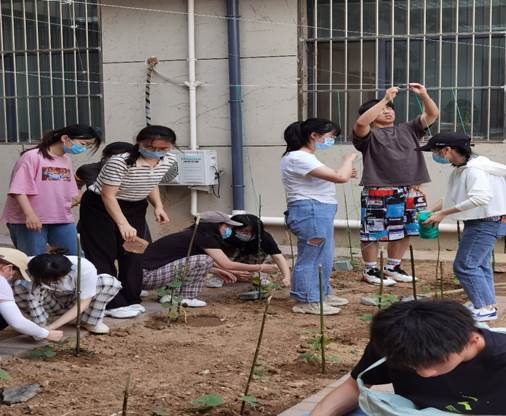 6月2日下午,新闻传播学院机关广电党支部与2021级硕士生党支部联合开展支部共建主题党日活动,以党建引领,推进劳动育人。新闻传播学院机关广电党支部书记王智洁、副书记徐迎春及支部委员柳晓翠、张益凤、韩苏扬和部分党员、工作人员,以及2021级硕士生党支部副书记李子嵩带领的支委成员、部分党员和入党积极分子,共同在生命南楼东侧的“新心向荣”小农场,开展了一次令人难忘的劳动教育主题党日活动。学院副书记王丽君参加了活动。