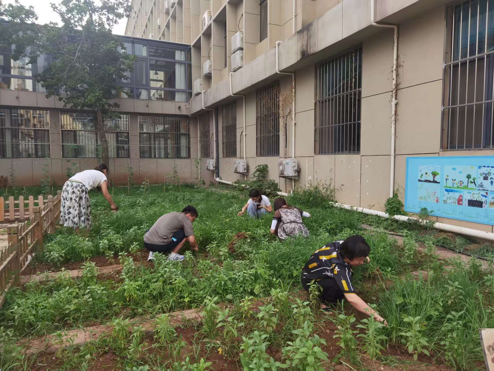 会后,参会人员又参加了“三全育人”——为小菜园锄草活动,以支部党建引领劳动教育,继续拓展“小菜园”与非遗文化相结合,打造药食同源“百草园”;助推劳动育人,凝聚育人合力。