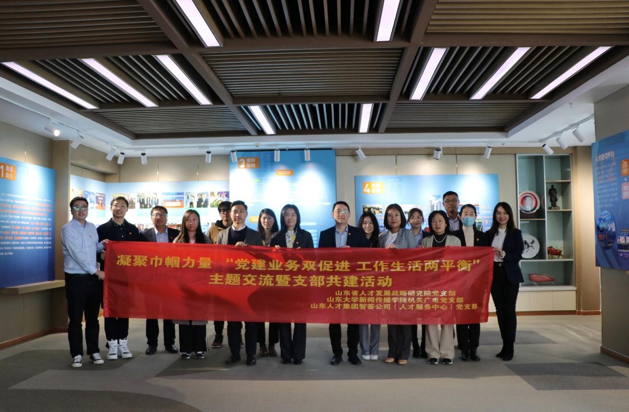 3月8日上午,庆“三八”国际妇女节之际,新闻传播学院机关广电党支部与山东人才集团智荟公司(人才服务中心)党支部、山东省人才发展战略研究院党支部联合开展“党建业务双促进 工作生活两平衡”主题交流暨支部共建活动。新闻传播学院机关广电党支部书记王智洁、团委书记杨璐与支部部分党员,参与此次活动并就支部共建、党建资源共享进行座谈交流。