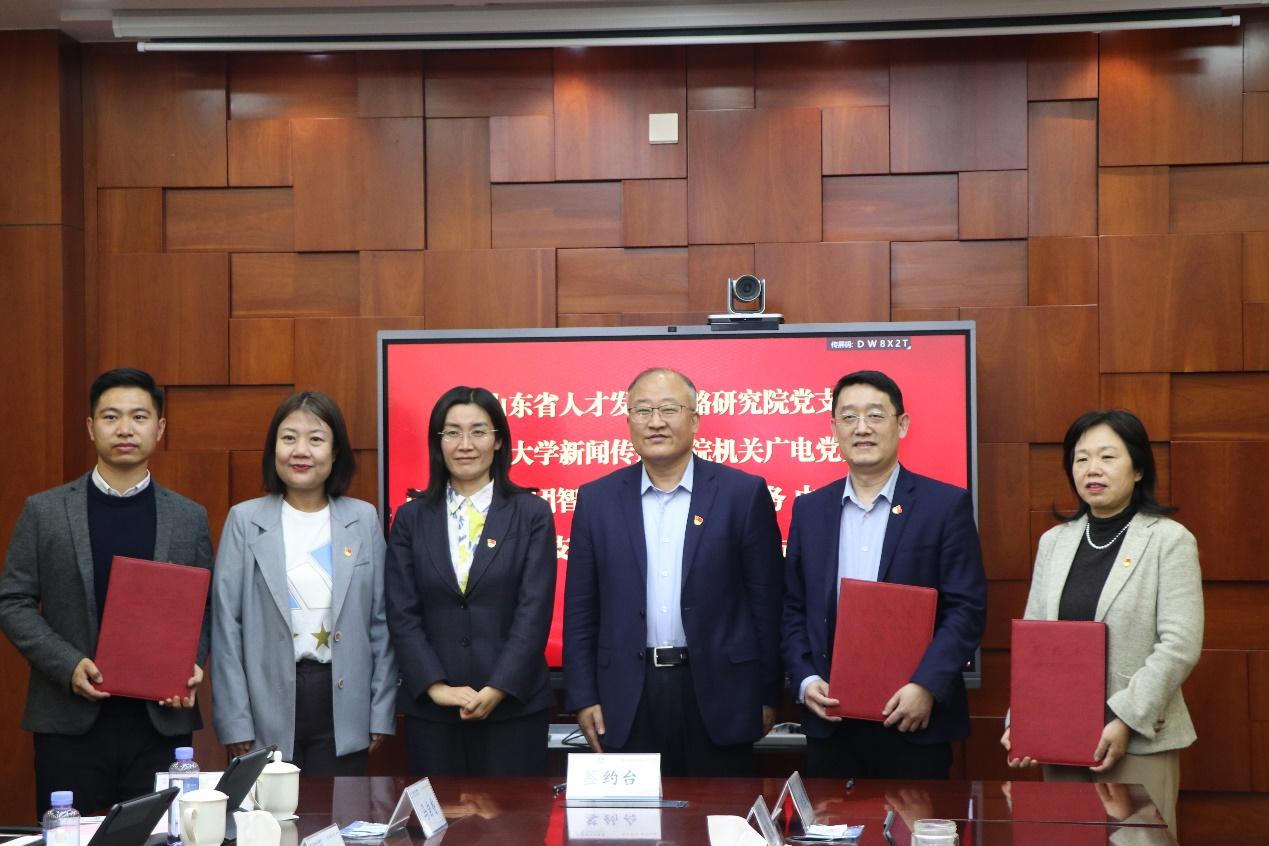 随后大家围绕如何进一步发挥巾帼精神,高质量开展工作进行探讨学习。山东省人才发展战略研究院党支部书记胡文安、山东大学新闻传播学院机关广电党支部书记王智洁、山东人才集团智荟公司(人才服务中心)党支部书记支富华分别介绍了所在支部的基本情况并签署了支部共建协议,与会人员围绕“党建业务双促进 工作生活两平衡”进行了座谈交流与研讨。