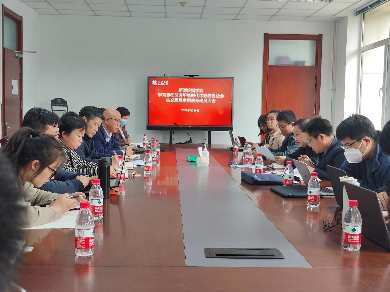 4月20日下午,新闻传播学院在中心校区生命南楼209会议室召开了学习贯彻习近平新时代中国特色社会主义思想主题教育动员会议。山东大学主题教育领导小组第二指导组副组长、审计处副处长张琦,第二指导组成员、资产与实验室管理部王小宁,新闻传播学院党委书记王德胜、院长刘明洋出席会议。