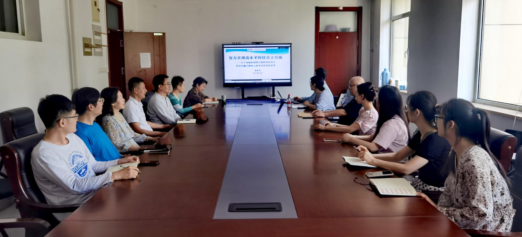 6月21日上午,新闻传播学院党委在生物楼二层209会议室,集中收看学校“努力实现高水平科技自立自强——加强原创性引领性科技攻关,坚决打赢关键核心技术攻坚战”专题辅导报告会。