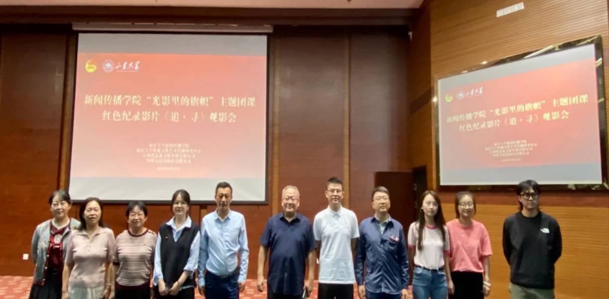 9月21日,为加强机关广电党支部建设,增强支部凝聚力与红色文化宣传,落实新学期工作会议精神,强化马克思主义新闻观,山东大学新闻传播学院机关广电党支部在中心校区知新楼三层思源报告厅参与“光影里的旗帜”——红色纪录影⽚《追·寻》观影活动。